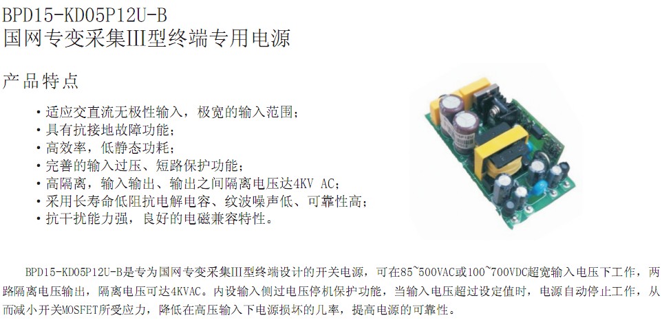 國網(wǎng)專變采集Ⅲ型終端電源BPD15-KD05P12U-B